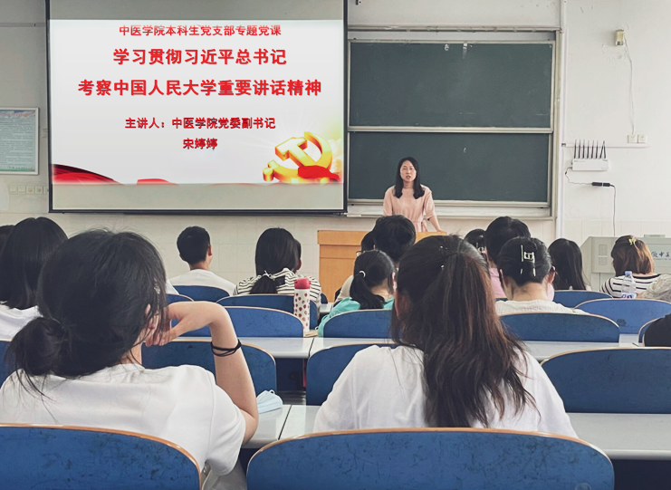 在中国共青团迎来成立100周年之际,在五四青年节即将到来之际,习近平总书记视察中国人民大学并同师生代表亲切座谈,对当代青年提出殷切期望和明确要求。会上,宋婷婷同志从“为谁培养人、培养什么人、怎样培养人”的问题到“传承红色基因,扎根中国大地”等两个方面带领大家集中学习了习近平总书记视察中国人民大学重要讲话精神。