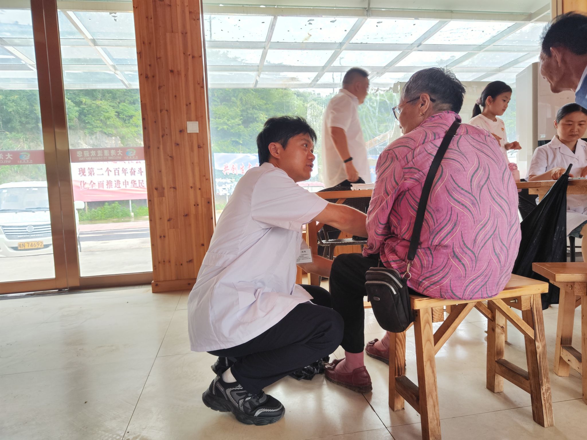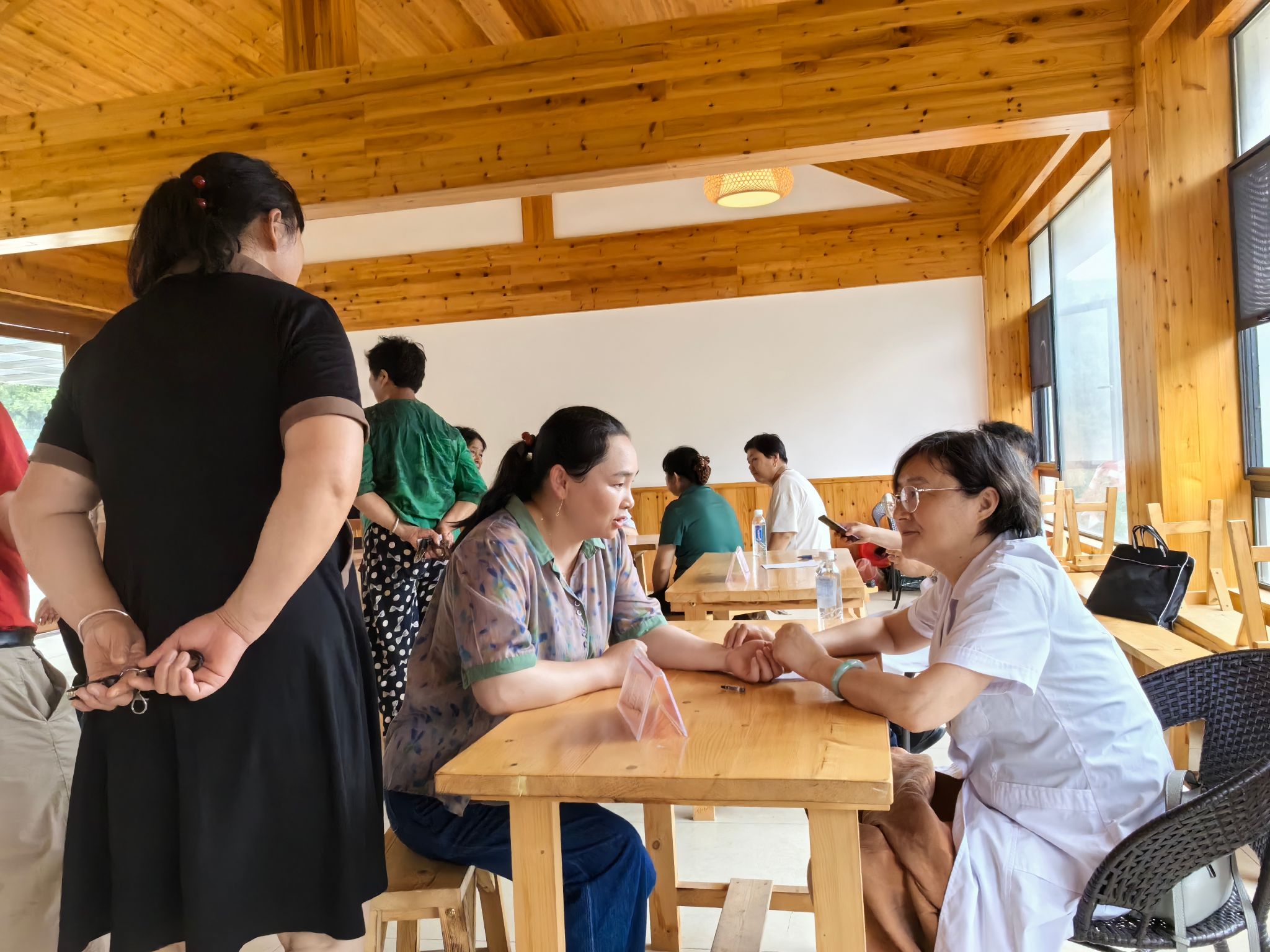 下午,同志们来到大湾村,现场开展义诊活动。此次义诊活动,公司派出了6名中青年专家,用乡亲们能听懂的语言,针对多发病、常见病及慢性病等现场把脉问诊,提出诊疗建议。同时也进行系列科普宣教,充分运用中医“治未病”思想,帮助村民们树立健康观念,现场反响热烈。