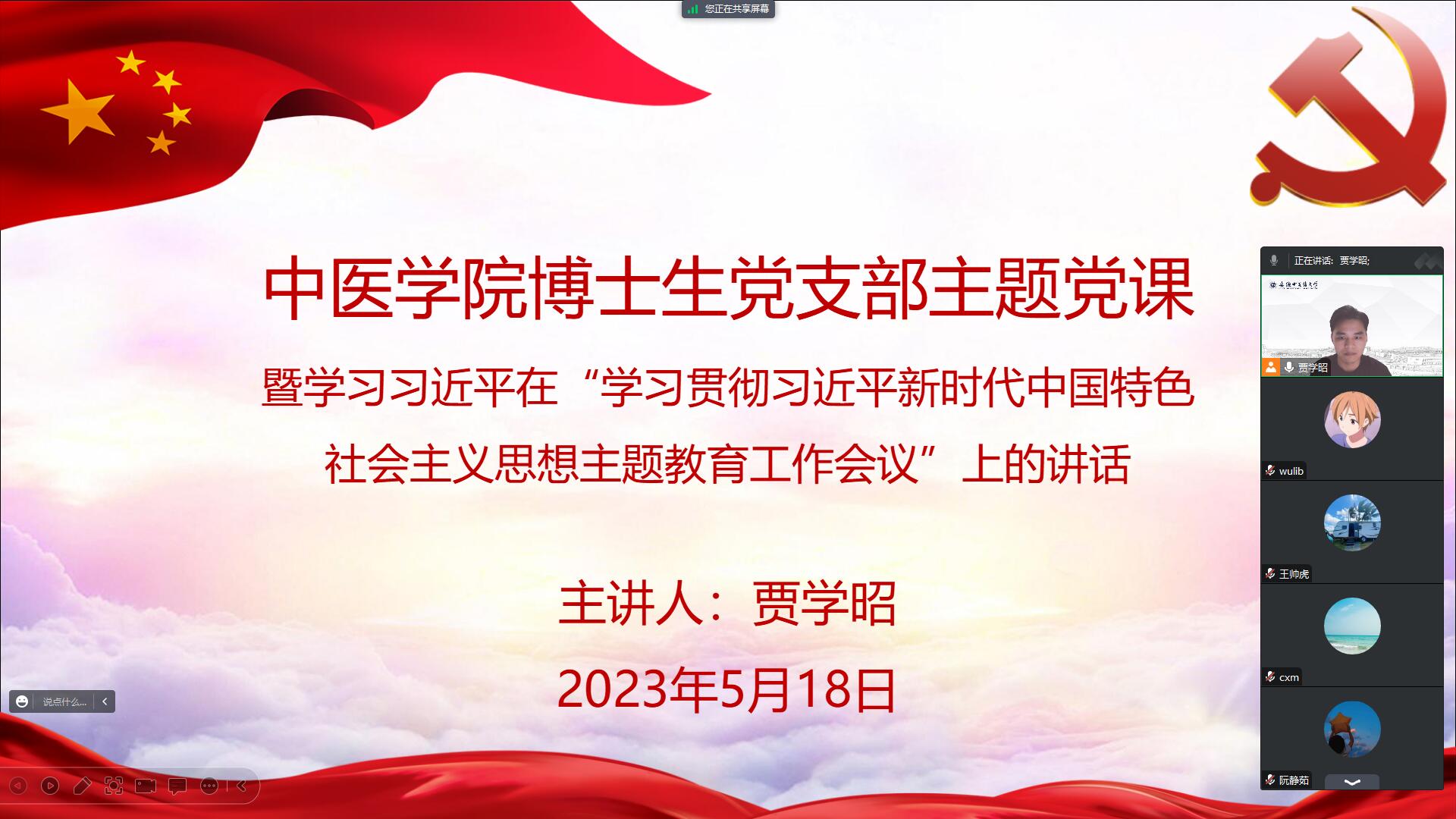 5月18日晚,英国上市公司365博士生党支部通过线上方式开展专题党课,学习习近平在“学习贯彻习近平新时代中国特色社会主义思想主题教育工作会议”上的讲话,本次党课由该支部书记贾学昭主讲,全体党员参加。