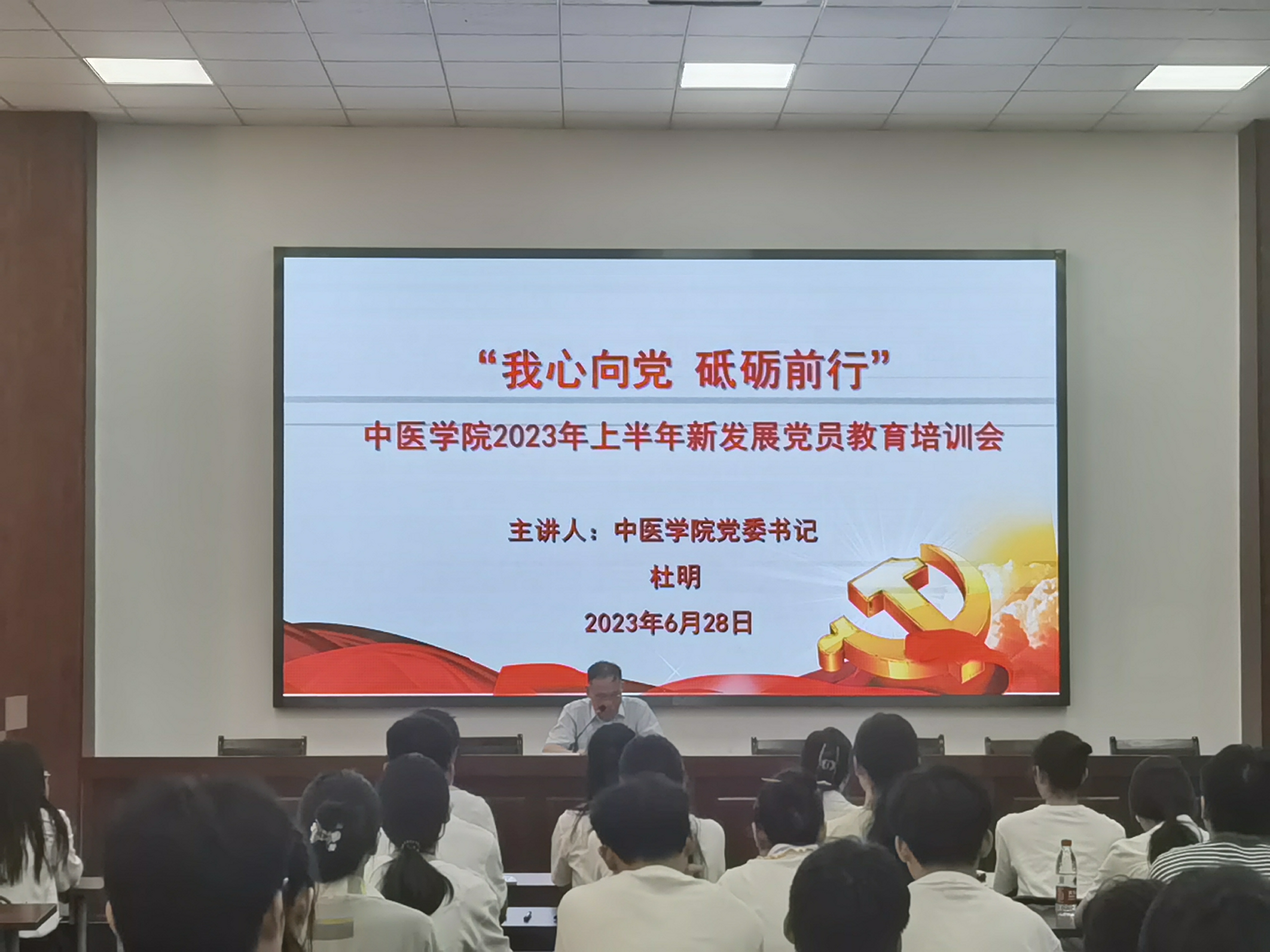 最后,杜明代表公司党委对新入党的同志表示祝贺,并提出希望和要求,一是要坚定理想信念,时刻牢记入党时的初心,弘扬伟大建党精神,永续“精诚是新”的优良传统;二是要争做合格党员,永远铭记面对党旗发出的庄重誓词,牢记党员的神圣责任和义务;三是要坚持学思用贯通、知信行统一,加强理论武装,筑牢思想根基,发挥党员先锋模范作用,在青春的赛道上奋力奔跑,为我们的中医药事业发展贡献青春力量。