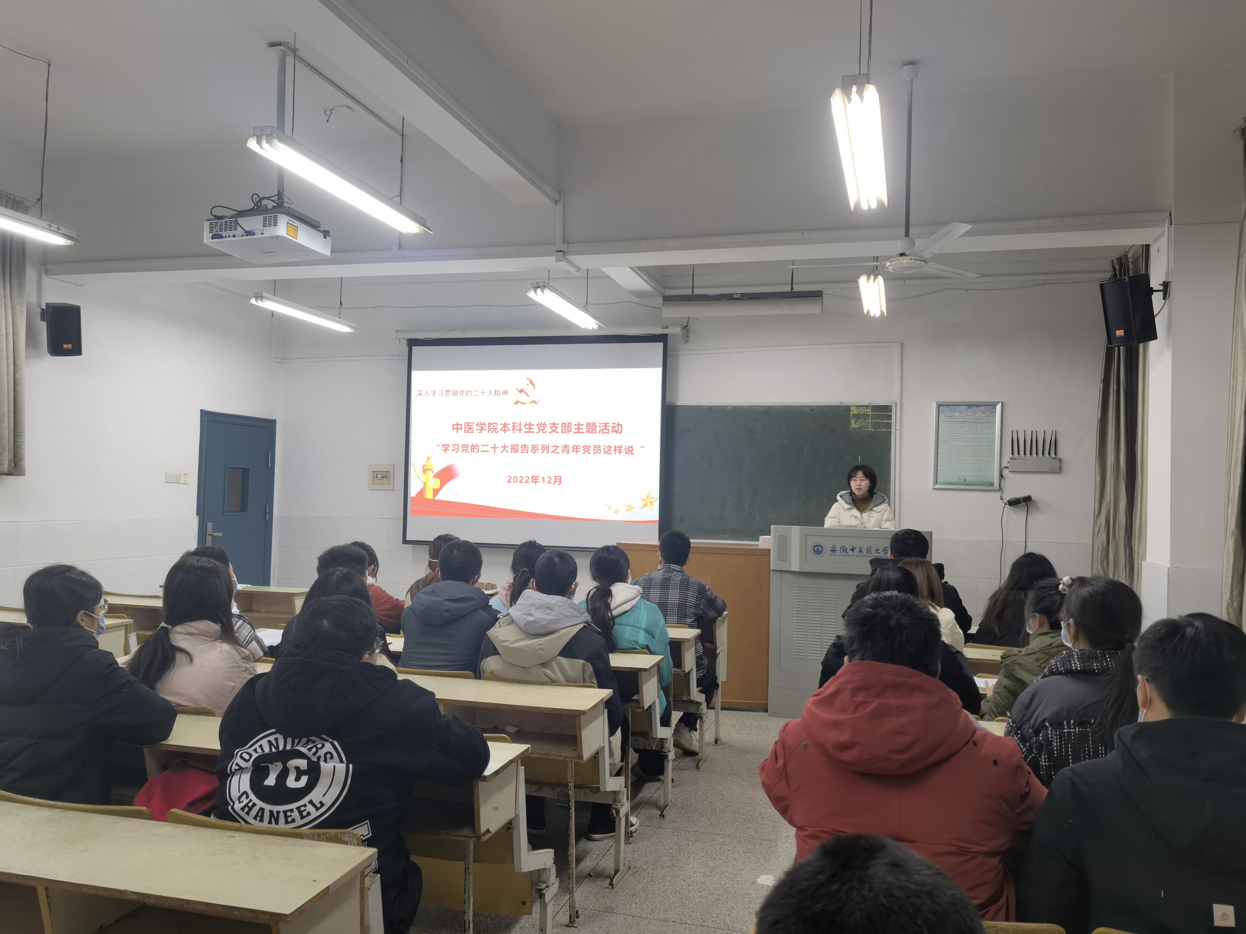 英国上市公司365本科生党支部于12月3日在仲景楼301教室举行“学习党的二十大报告系列之青年党员这样说”专题活动,英国上市公司365本科生党支部全体党员参与本次活动,会议由党支部教师党员代表方林莉同志主持。