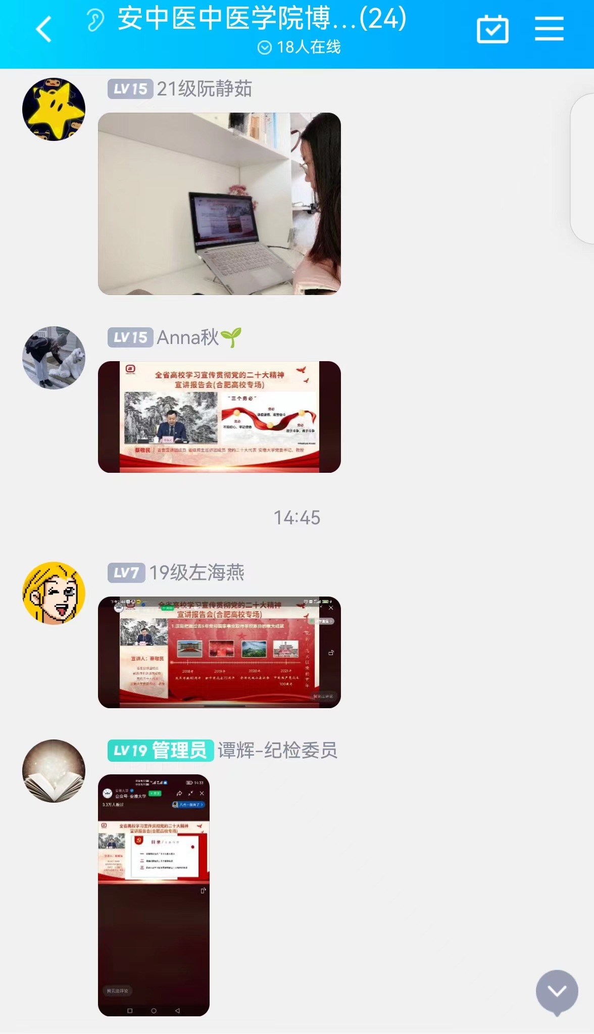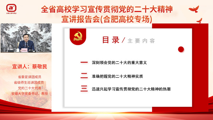 1月4日下午,英国上市公司365博士生党支部全体党员同志,通过网络平台观看学习了“全省高校学习宣传贯彻党的二十大精神宣讲报告会(合肥高校专场)”。本次宣讲报告会由党的二十大代表、安徽大会党委书记蔡敬民教授主讲。