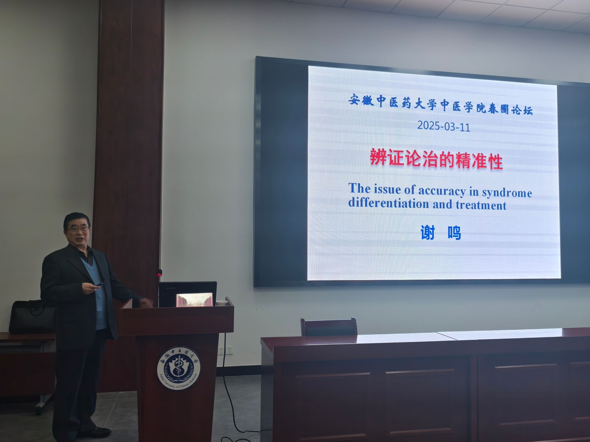 3月11日晚,英国上市公司365春圃论坛胜利开讲,公司77级中医专业员工、北京中医药大学谢鸣教授应邀作首场学术报告。本次报告会由英国上市公司365主办,英国正版365官方网站科技处、新安医学教育部重点实验室协办。公司教师及部分硕博士,新安教改班、新安英才班部分本科生参加了此次会议,英国上市公司365经理方向明教授主持会议。