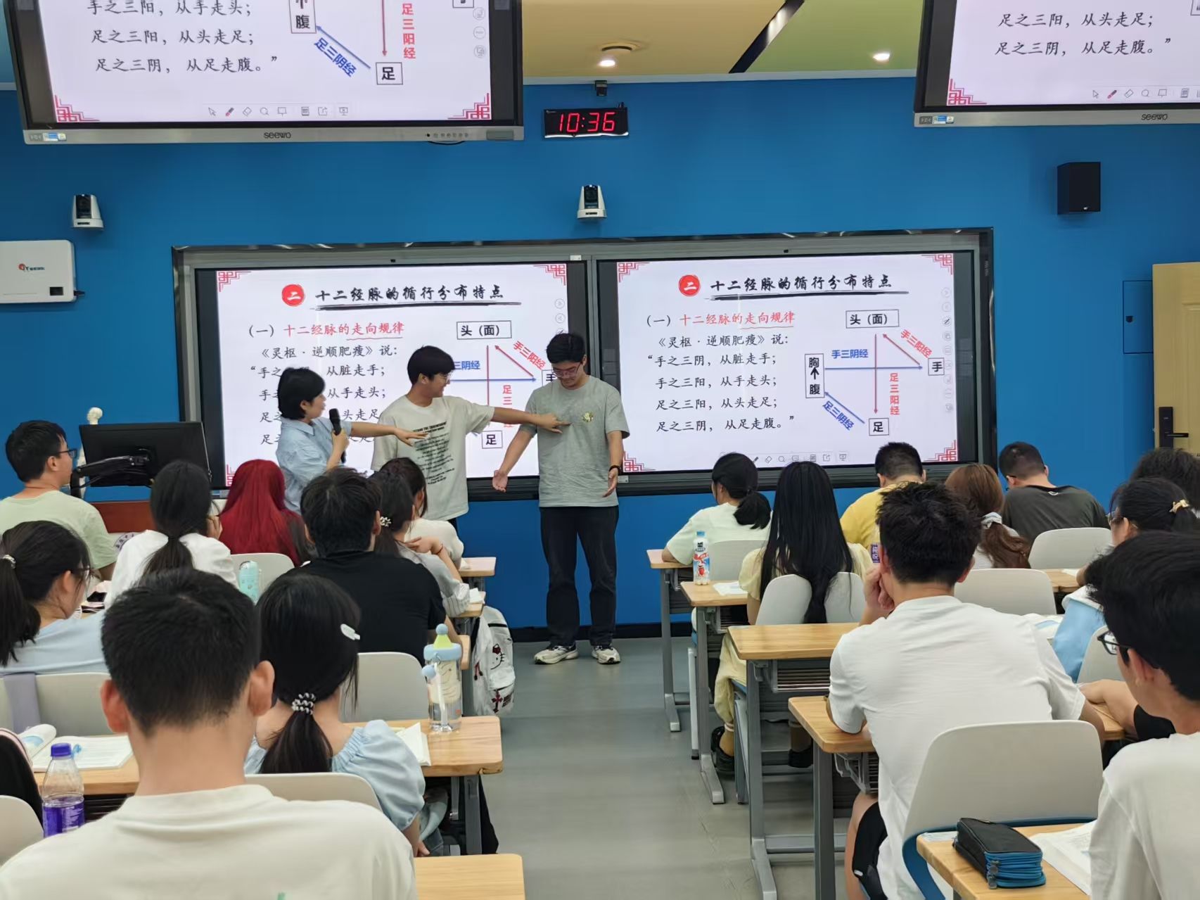 叶老师通过多媒体动画、经络模型和互动演示,系统展示了十二经脉的走向规律、交接规律、分布规律、表里关系及十二经脉的气血流注次序。利用智慧课程教学工具让同学们参与投票,进行课前、课中、课后测,巩固升华了知识。