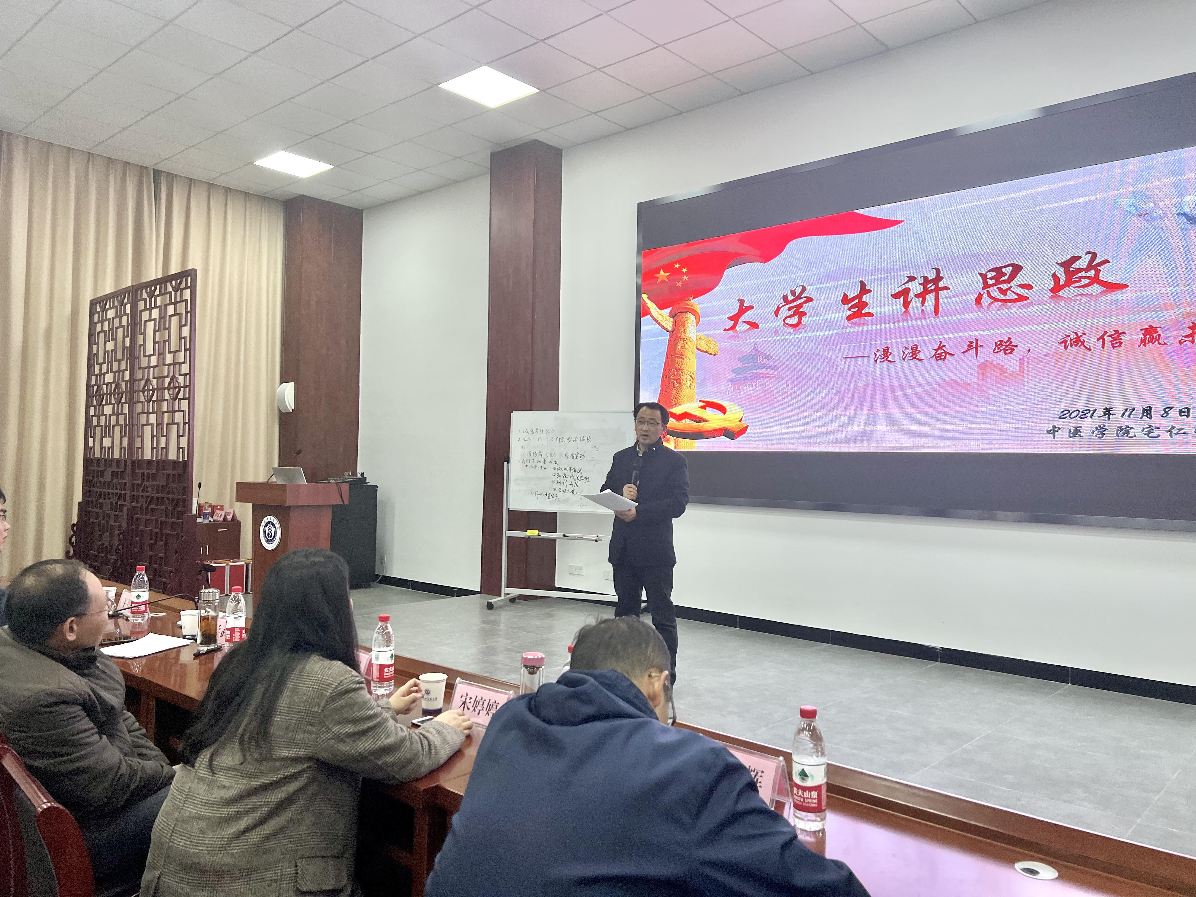 黄学武对参赛队伍的表现进行了点评,他认为各组选手准备充分,能将思政课程知识点和自身专业相结合,紧密围绕主题,充分展现了当代老员工不忘历史、关注社会、热爱医学的人文情怀。同时他指出要做好课程导入、知识衔接、重点把握和讲课艺术,注重创新,让思政课开展得有声有色、有情有味。