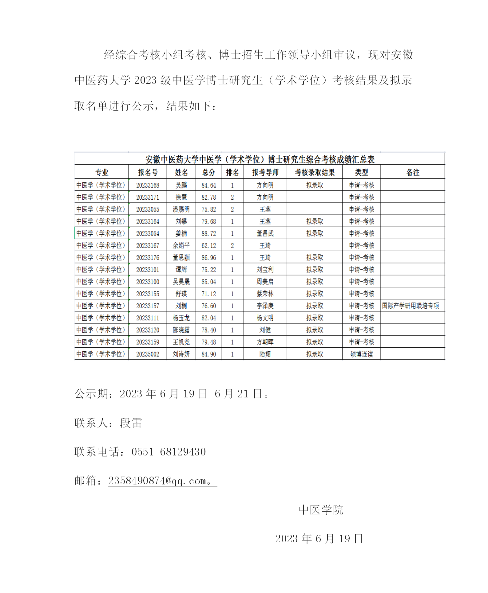 2023级中医学博士研究生(学术学位)拟录取名单公示