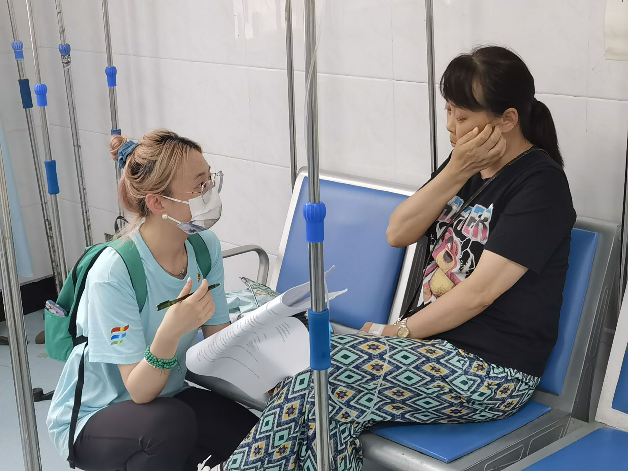 “草香医情”志愿服务队前往瑶岗社区为民服务中心进行义诊与中医药知识科普宣讲活动。义诊期间,同学们耐心、仔细地为居民们量血压、测血糖及按摩推拿,同时为其提供养生功法茶。义诊活动结束后,同学们为百姓群众进行中药知识科普并进行香囊制作教学活动,赢得群众的热情欢迎。随后前往肥东县撮镇镇中心卫生院对医生进行职业生涯人物访谈,同时为卫生院的病人和医生发放香囊、夏季养生宣传册等并进行问卷调查。接着“草香医情”志愿服务队前往撮街了解肥东县撮镇镇的历史文化并对群众进行中医药文化宣传及调研。