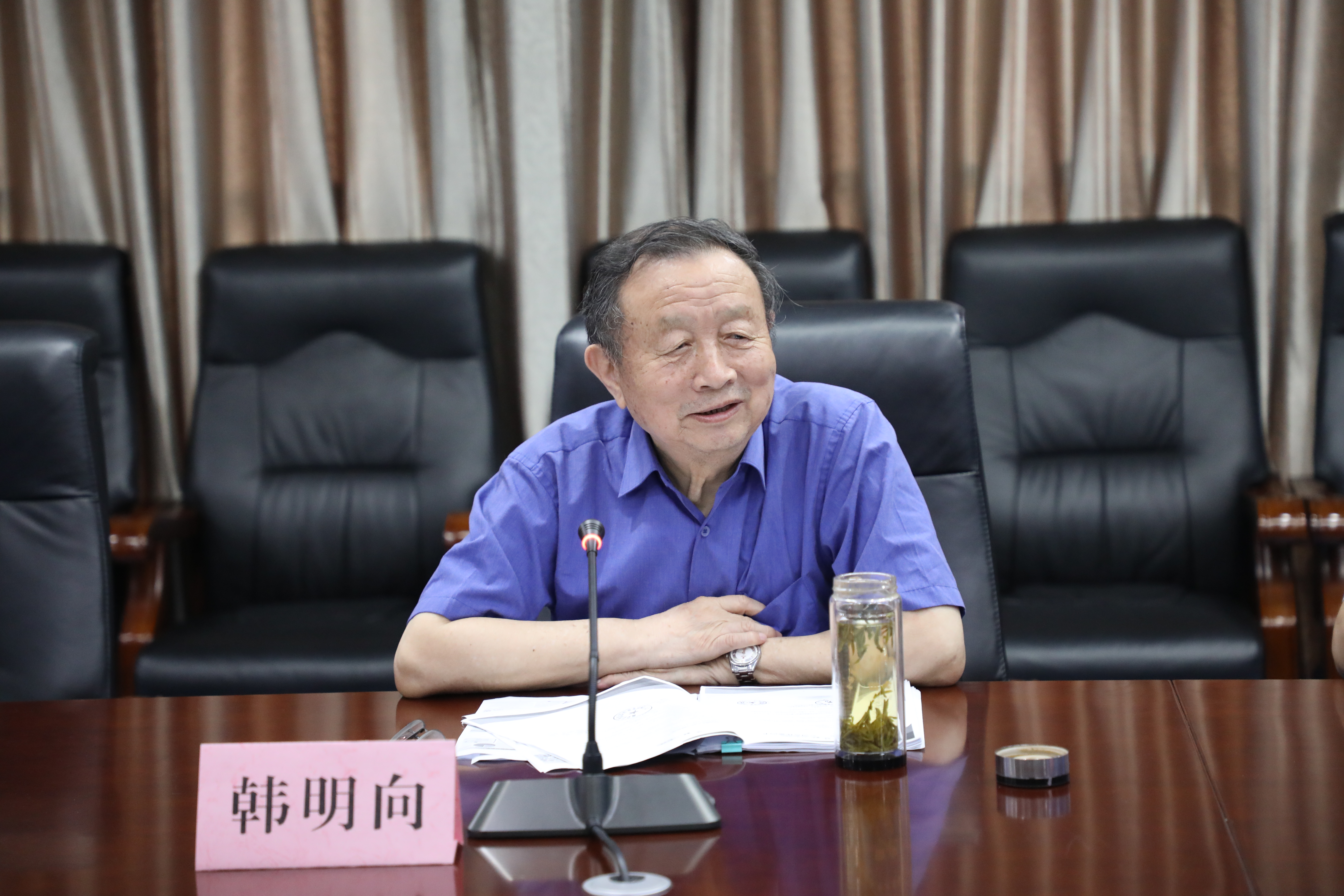 汇报结束后,韩明向对项目的选题予以肯定,并与项目组成员面对面交流,审阅参赛材料,通过模拟答辩、一对一答疑等方式,进一步梳理了项目脉络、思路和亮点,就项目作品的科学性、先进性、可行性等方面进行指导,为项目组进一步打磨参赛作品提供了宝贵建议。童佳兵指出,中国国际“互联网+”老员工创新创业大赛是目前国内最大的、影响力第一的综合性赛事,项目组成员要珍惜本次交流机会,就韩明向大师提出的指导意见进行研讨改进,结合中医药文化挖掘项目亮点,提高团队备赛的竞争性,着力提升参赛作品质量。