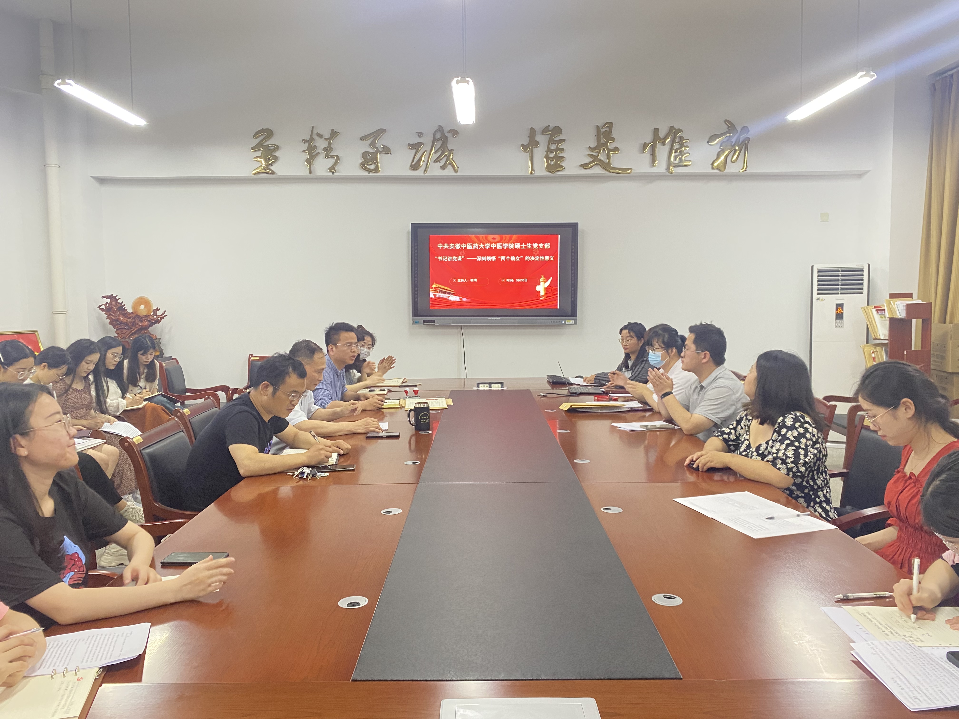 他强调,要深刻理解“两个确立”的决定性意义,坚持用习近平新时代中国特色社会主义思想凝心铸魂,鼓励硕士生支部全体党员结合学习、工作和生活实际,用实际行动为公司“振兴中医药、建设双一流”助力。(文图/段雷 审核/杜明)