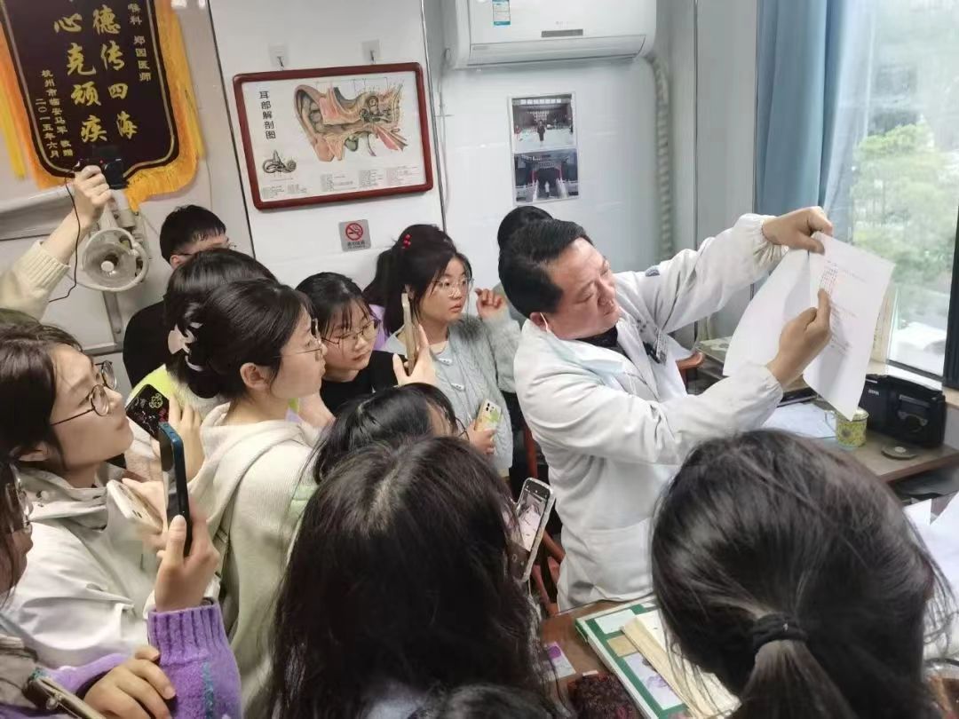 在徽文化博物馆,新安班同学们沉浸在浓厚的文化氛围中,不断感受着徽商、徽派建筑、徽州文房四宝、徽州篆刻、徽州三雕等徽州古韵的魅力,与源远流长的徽文化隔空对话,进行了一场浸润心灵的文化体验。在黄山市新安医学研究中心,同学们开启了印象深刻的新安医学求知之旅。从新安医学源远流长到新安明医青史流芳,从理法方药橘井泉香到薪火传承踵事增华,同学们不仅对新安医学有了更为深刻的认知,更强化了自身对于新安医学传承的责任感,纷纷表示要做好新安医学传承创新发展。在屯溪西园郑氏喉科门诊部和程氏内科门诊部,同学们深入探寻新安医学的传承记忆。西园郑氏喉科和程氏内科的传承人不仅向同学们详细介绍了两支医学世家的历史渊源,还向同学们传授了中医临床的相关知识,耐心解答同学们所提出的疑惑。最后不忘鼓励中医学子坚守初心,守正创新,做新安医学的传承者和发扬者,令同学们受益匪浅。在黄山市中医院,同学们重点参观了康复科室和新安名医堂,医务人员向同学们展示了康复机器的操作方法以及临床常用推拿康复手法,增长了同学们的见识和对自身专业的认知。在新安名医堂,同学们认真体会名医们的治病思想,学习名医的治病方法,在临床应用中深刻领悟新安医学的价值意蕴。在屯溪寿康诊所,同学们领略了休宁方氏医学的风采,方炜煌老先生联系临床病例的讲解及举手投足之间无不体现的儒医风范给同学们留下了深刻的印象。