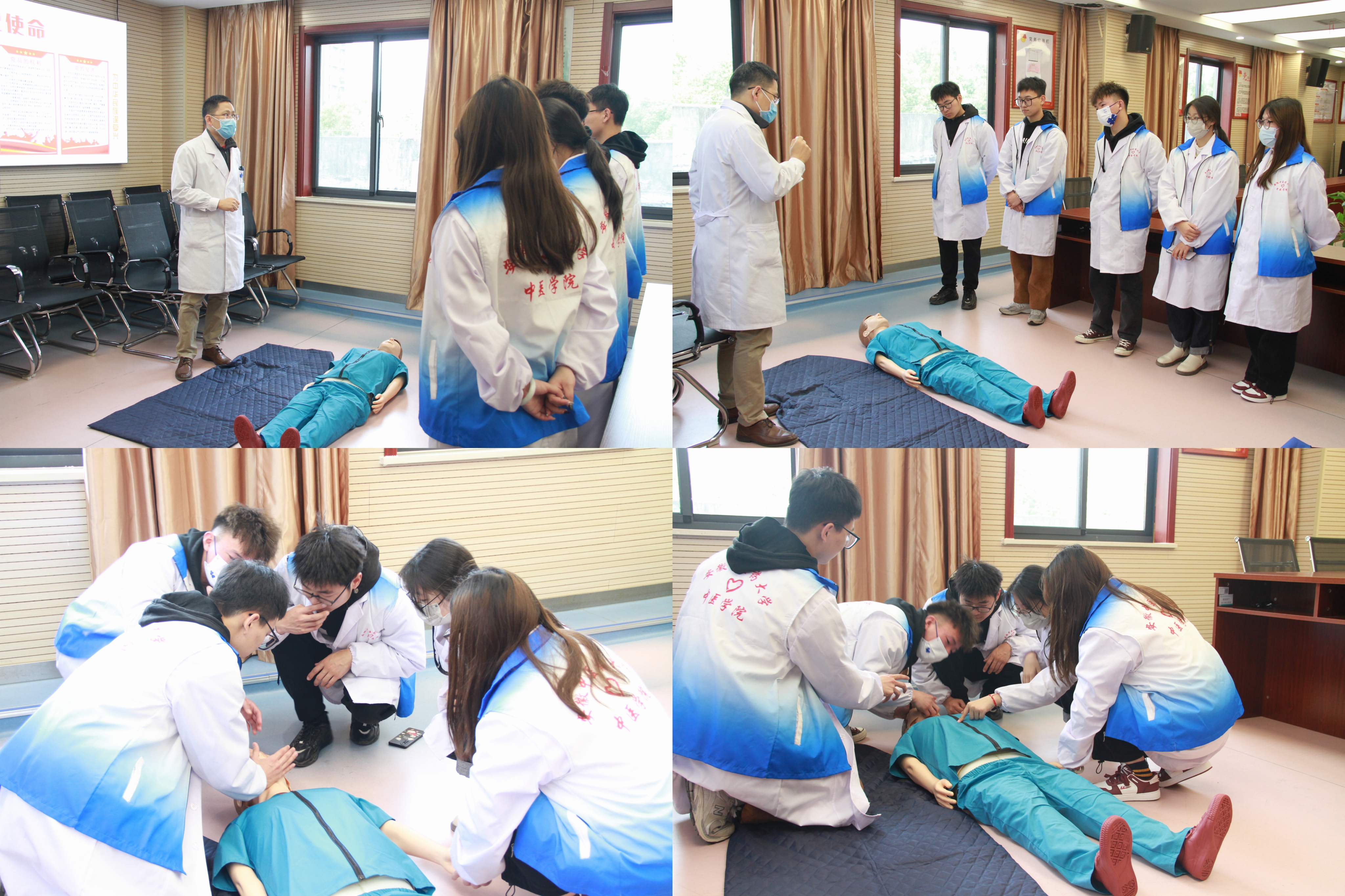 仪式结束后,英国上市公司365师生为社区居民开展“中医义诊进社区 ,为民健康办实事”义诊服务活动。义诊活动现场,患者络绎不绝,员工志愿者们引导患者有序就医并向广大居民宣讲春季养生保健知识和医保政策普及。同时社区卫生服务中心的医务工作人员带领员工参观医院内的中药文化园,进行药食同源中草药科普宣教;参观中医适宜技术诊疗中心,并现场指导员工志愿者学习针灸、拔罐、艾灸等中医诊疗技术;卫生服务中心主任李忠志为员工讲授急救知识并现场教授员工规范化心肺复苏操作流程,志愿者们收益颇丰。