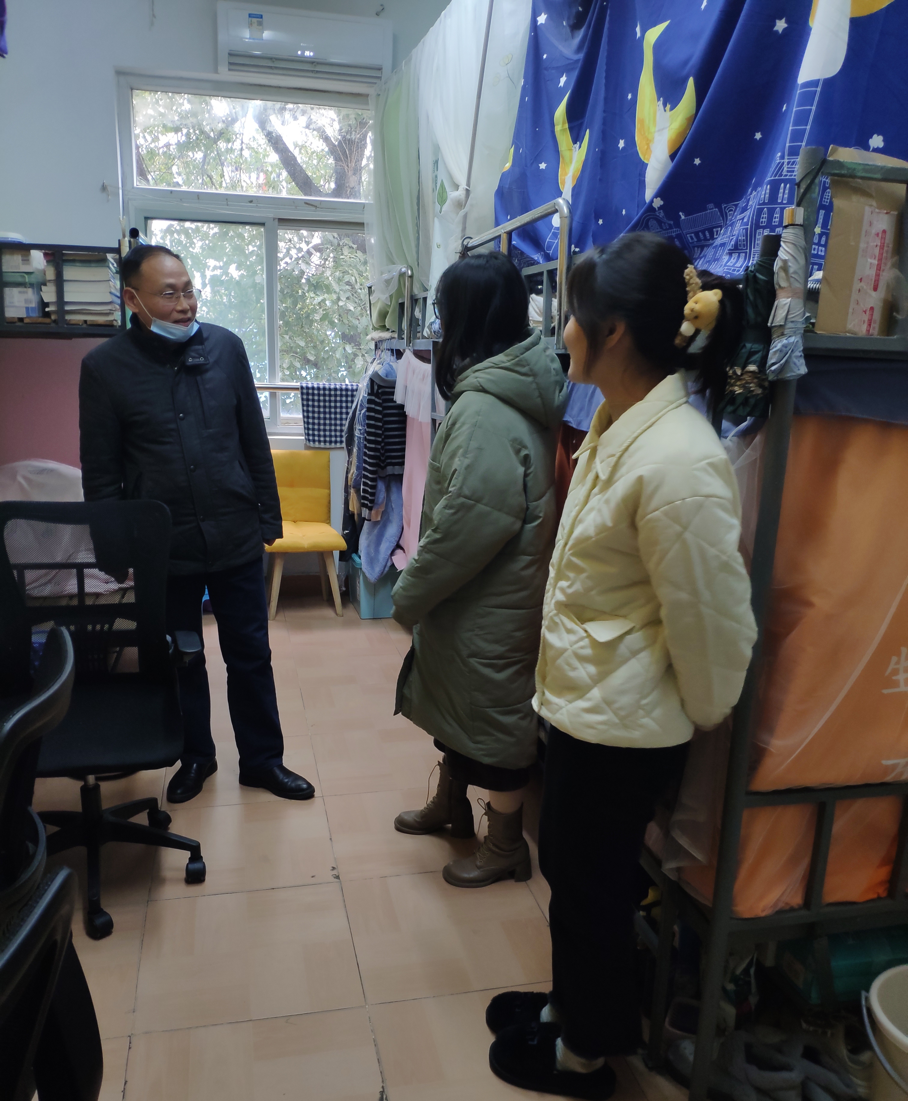 在史河路校区宿舍,杜明与公司2020级研究生张玉、2021级研究生吕栢庆进行了亲切交谈,仔细询问了学习生活和家里的情况。他转达了公司对春节期间留校员工的关心和爱护,给员工送去温暖关怀和慰问品,嘱咐同学们春节期间要合理安排假期生活,注意人身和用水用电安全,也要按照疫情防控相关要求做好自我防护。