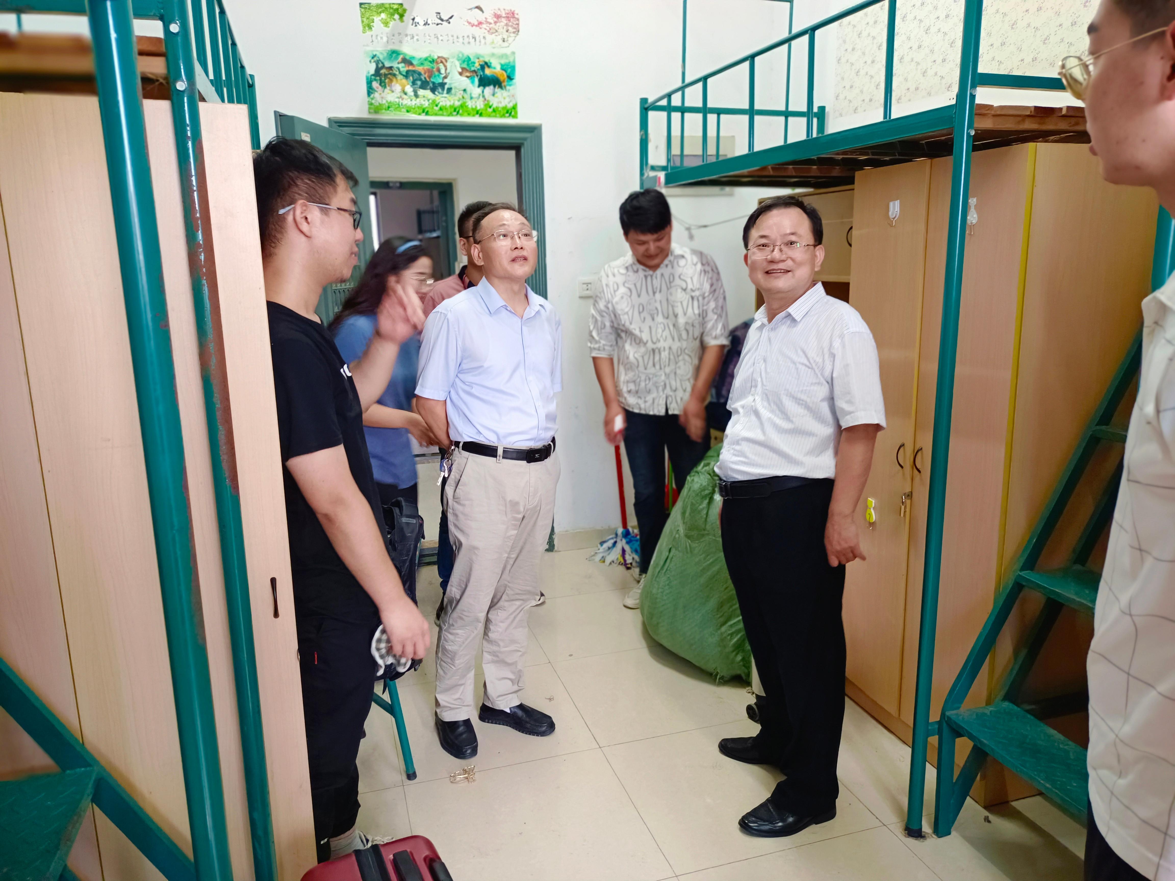 9月2日下午,公司党委书记杜明、经理方向明带领辅导员老师走访2021级研究生新生寝室,检查疫情防控工作,了解员工住宿情况。