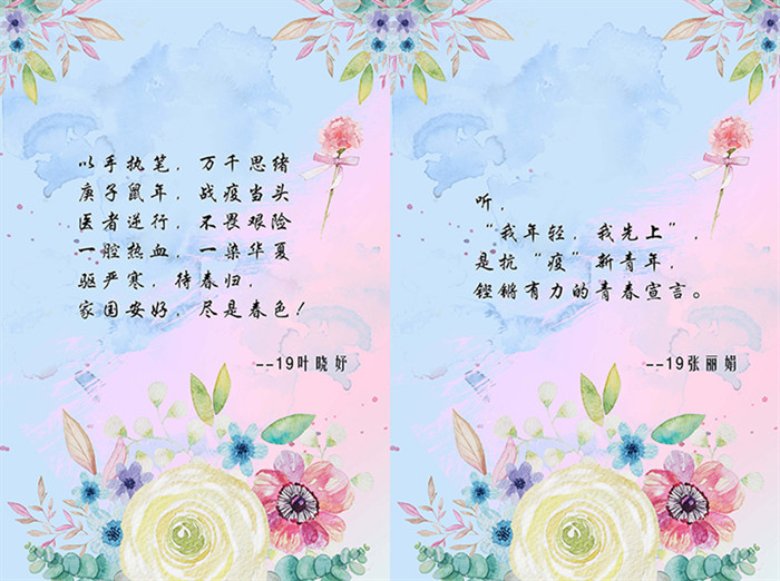 本次活动中组织人员积极宣传,同学们积极响应,呈现出许多优秀作品。短短的三行文字,道出了对“逆行者”们最崇高的敬意,以及作为中医学子,对未来中医事业发展的信心与决心。经过初步筛选及最终的线上投票,19中医二班郑志祥获得一等奖,18中医儿科班戴优雅、19中医儿科班汪锐获得二等奖,19中医定向班圣宁、19中医一班叶晓妤、19中医一班张丽娟获得三等奖。