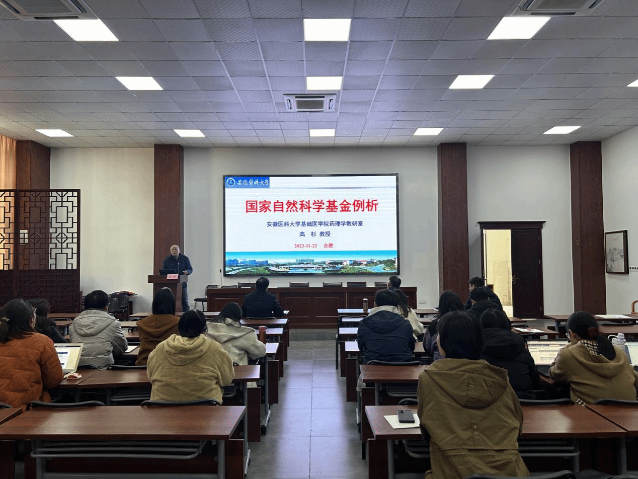 按照公司2024年度国家基金申报工作的总体安排,11月29日下午,公司在宅仁堂学术报告厅举办了国家自然科学基金(以下简称“国基金”)项目申报专题指导讲座,讲座邀请了安徽医科大学人事处副处长(兼),基础医公司药理学教研室主任高杉教授做了题为“国家自然科学基金例析”的专题报告。会议由朱国旗副经理主持,方向明经理、童佳兵副经理及英国上市公司365部分教师聆听了讲座。