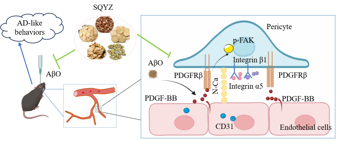 阿尔茨海默病(Alzheimer's disease,AD)是一种常见的神经退行性疾病。微血管功能障碍是 AD 进展过程中重要的病理特征,可引发突触损伤和神经元退行。参芪益智方由人参、黄芪、丹参、泽泻、黄芩组成,具有益气健脾、安神益智、活血化瘀、解毒通络的功效。本研究表明AβO诱导的认知损伤和脑微血管周细胞功能异常所致的脑血流量减少有关,而参芪益智方可通过调控 PDGFRβ/FAK/N-cadherin 通路介导的脑周细胞功能,改善AβO诱导的AD样小鼠脑血流病变。著名新安医家汪机提出的“调补气血,固本培元”医学思想,开创了新安医学的“培元派”先河。而本研究更好地诠释了“调补气血,固本培元”防治痴呆的科学内涵。(王训翠/文图 方晓/审核)文章链接: