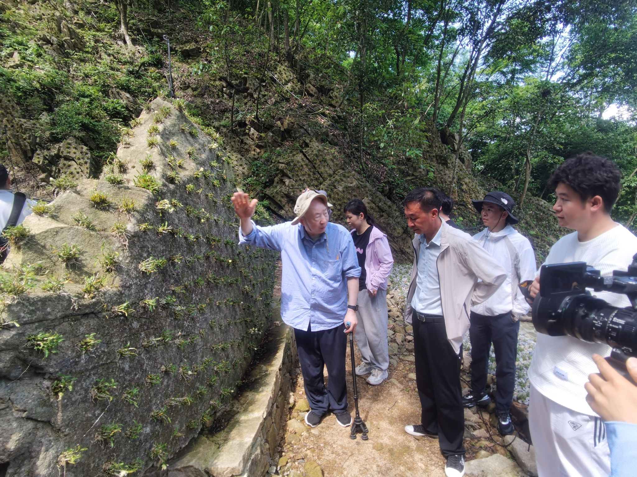 地处大别山区腹地的霍山中药资源丰富,王德群教授通过现场实地采集,融入本草的生态、习性、产地和功效等特点来讲授每味中药的故事,娓娓道来,印象深刻(见图1~4),比如漫水河基地于倾斜的石壁上仿野生栽培霍山石斛,其气生根给人带来强烈的视觉震撼,达到了接近野生霍山石斛的品质,也给当地百姓创造了安居乐业之福。