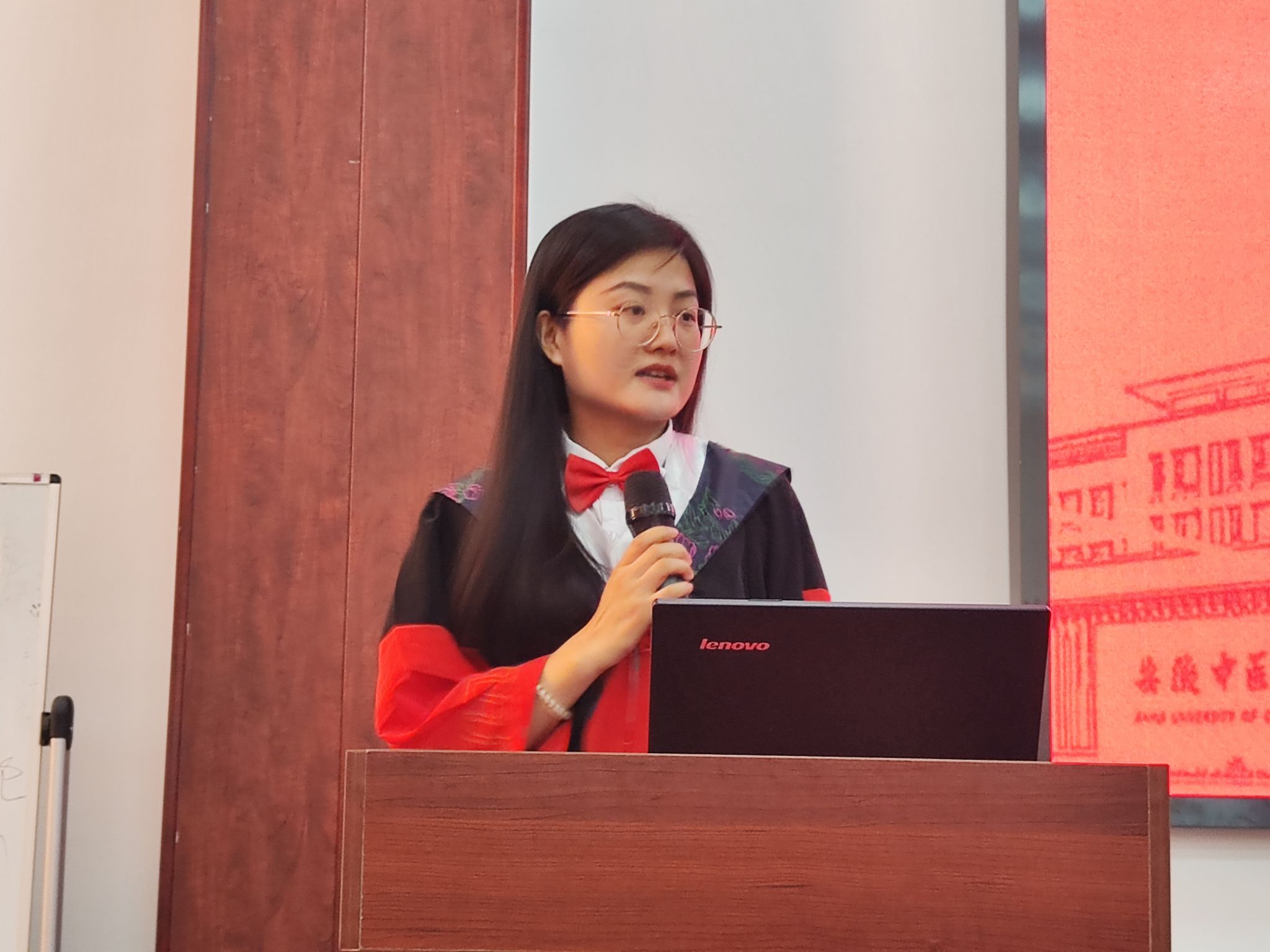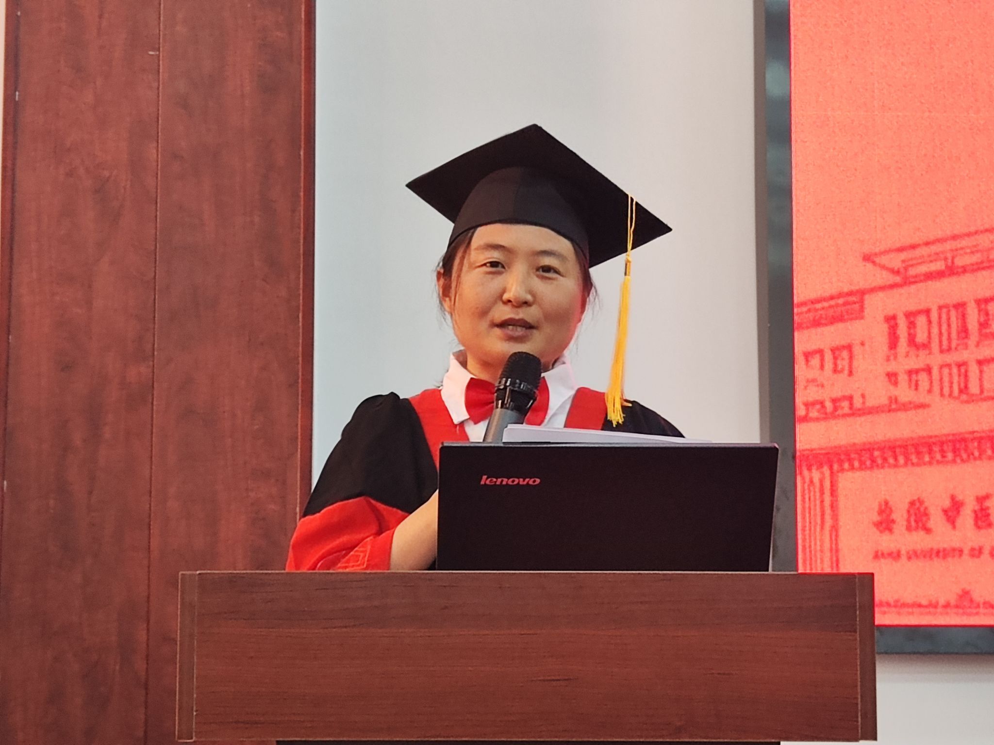 研究生导师代表李姿慧老师以自身例子对全体毕业研究生表达三点殷切希望,希望同学们要“坚定中医信念,弘扬中医精神”“持之以恒,不断超越”“关注母校,回报祖国”。