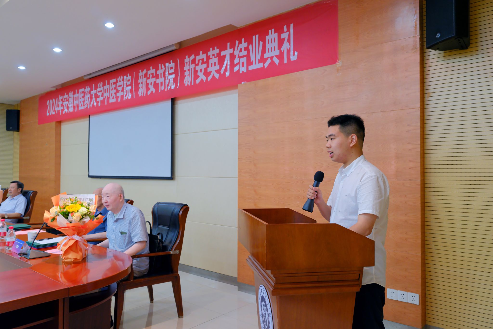 员工代表朱业轩同学在发言中表示,结业不是结束,而是新的开始。新安书院只是学习中医路上的一个驿站,离成为救百姓于生死的大医还有很长的路要走。今后将“博极医源,精勤不倦”,不断深化对中医理论的理解,精进临床技能,传承和发扬中医文化,做一名让人民满意的医生。