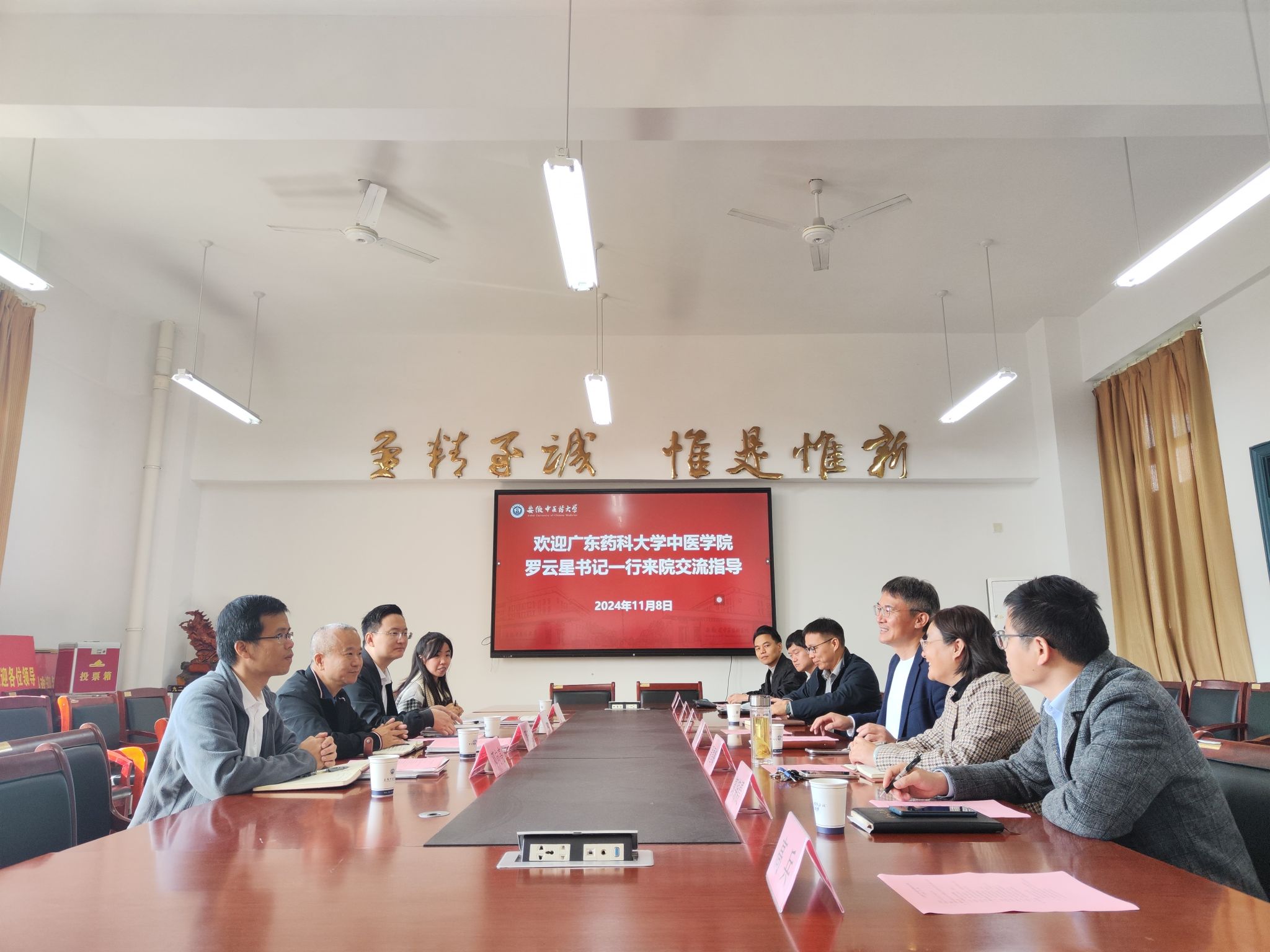 11月8日上午,广东药科大学公司党委书记、副经理罗云星一行来院调研交流,公司党政领导班子、系主任、教学办公室成员参加交流会,会议由公司党委书记方晓主持。