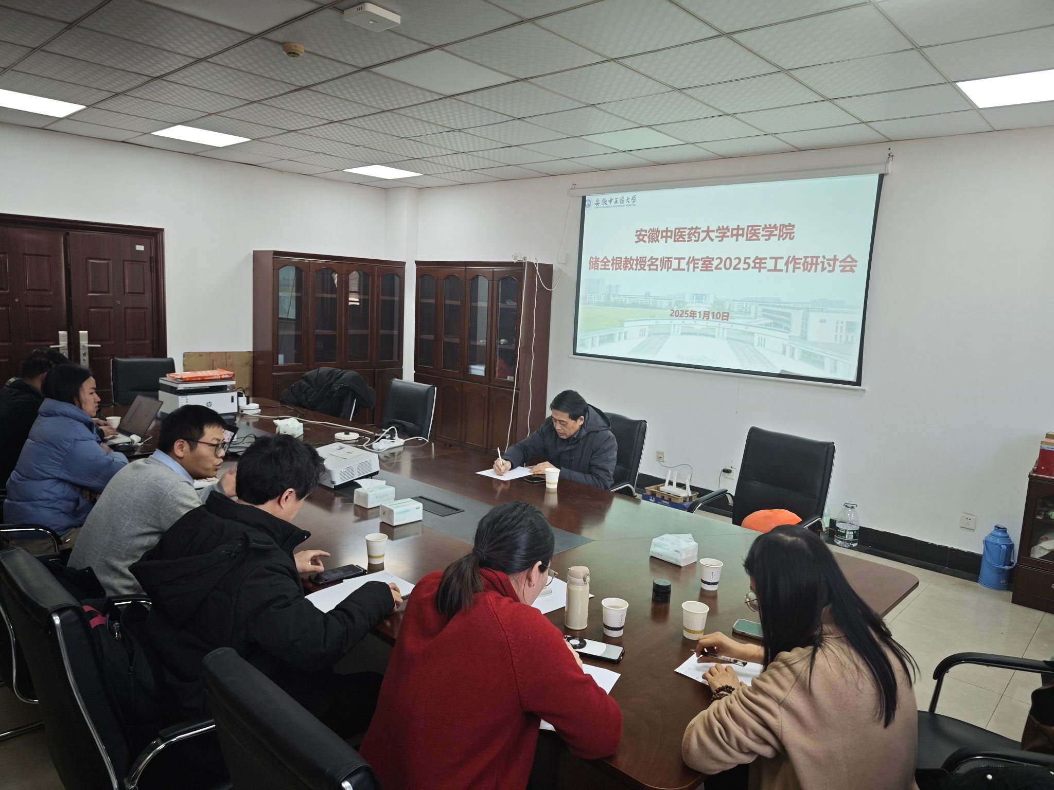 储全根教授肯定了2024年名师工作室全体成员的付出及成果,他指出新的一年:一要立足教学实际,聚焦教学热点难点,进一步开展教学改革与研究,全面提高教学效果;二要积极申报各类科研项目,加强科研能力的培养,争取在国家级项目立项上有新突破;三要借助学科优势,结合临床门诊,增加各教师门诊跟诊学习机会,为培养中医临床人才助力;四要搭建多元成长平台,对内组织学术交流活动,对外选派青年骨干进修学习,促进青年教师茁壮成长。