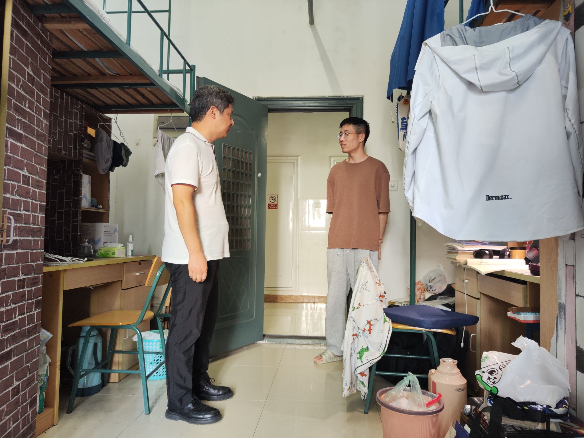 来到公司毕业班宿舍,张亚辉关切询问同学们的暑期生活与学习情况,并结合公司近期赴阜阳市中医医院“访企拓岗”的实例,提醒毕业生提前规划就业,尽早谋划职业发展;针对低年级研究生,张亚辉叮嘱他们要尽快融入导师课题组,科学制定学业规划。
