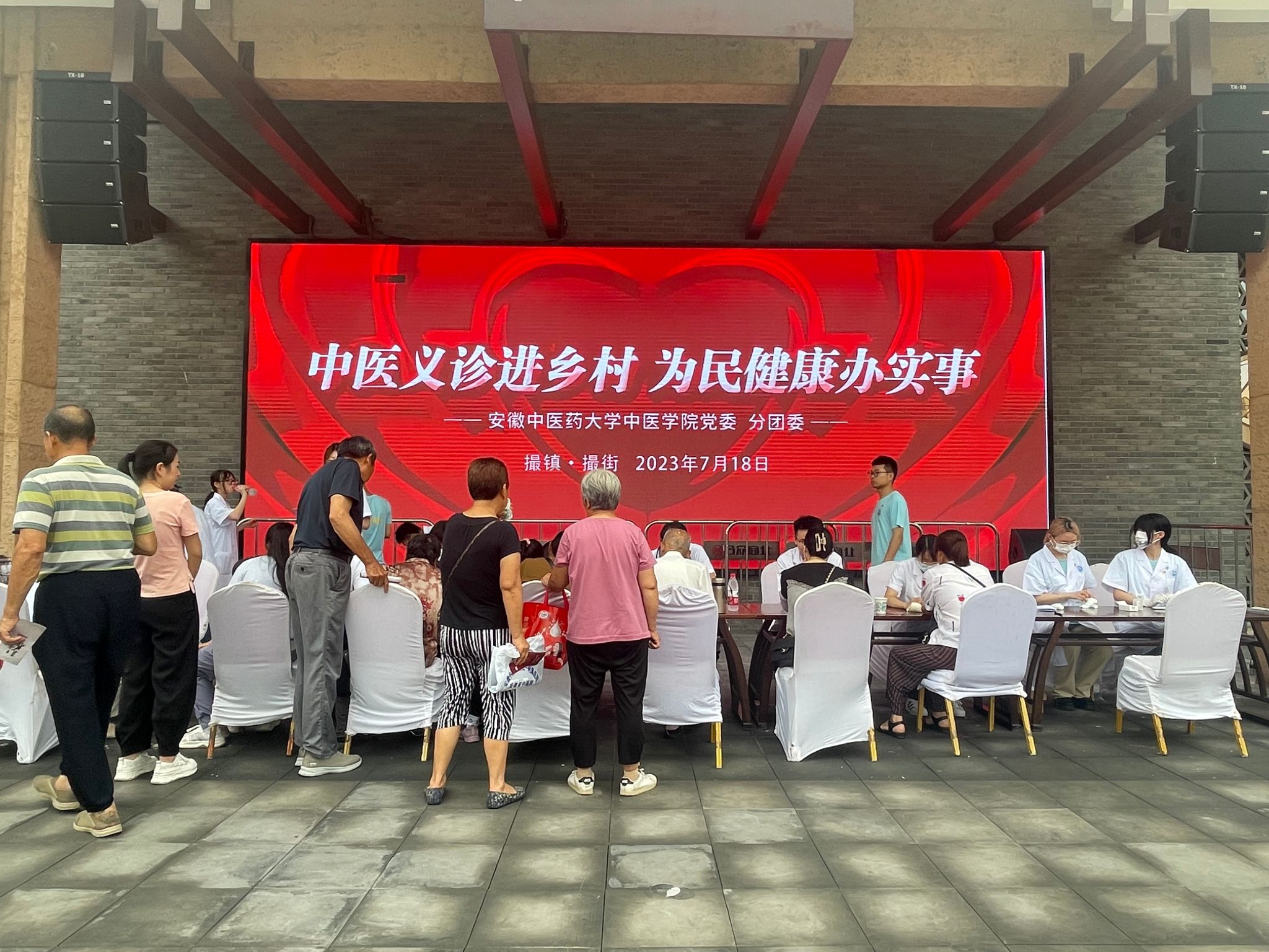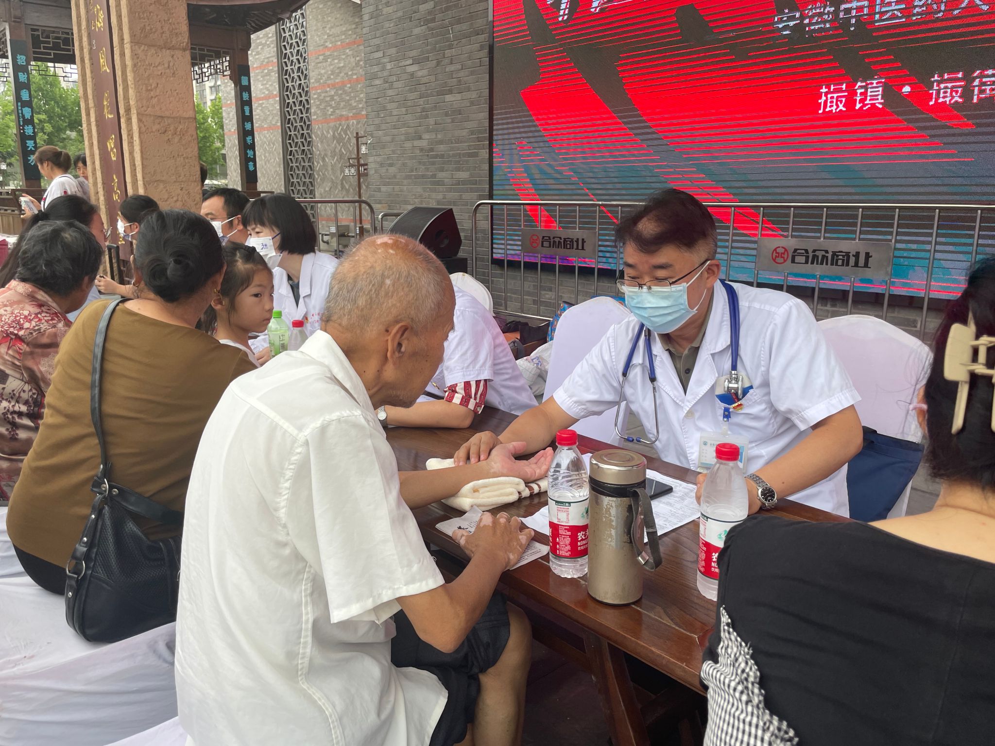 为推进学习贯彻习近平新时代中国特色社会主义思想主题教育纵深开展,切实履行“重实践”要求,推动中医药大健康进社区服务百姓,7月18日,公司党委组织师生党员前往肥东县撮镇镇瑶岗社区开展中医义诊及夏季防病健康知识宣传活动。公司党委副书记宋婷婷、副经理童佳兵、党委委员吴元洁、教工第一支部书记李姿慧、教师党员李佩佩、教师党员杨勤军、硕士生支部组织委员吴凡及部分员工党员参加了本次义诊活动。