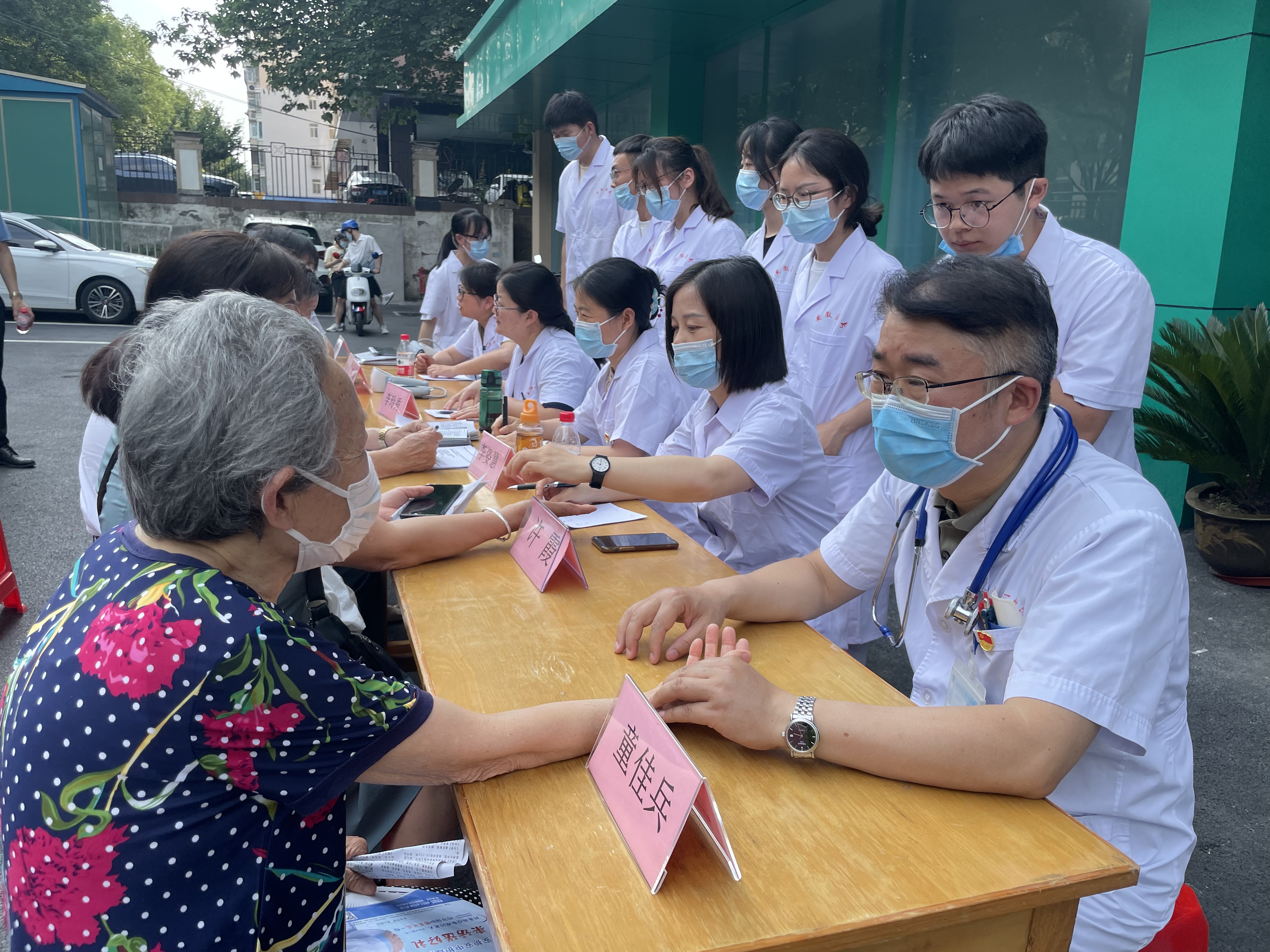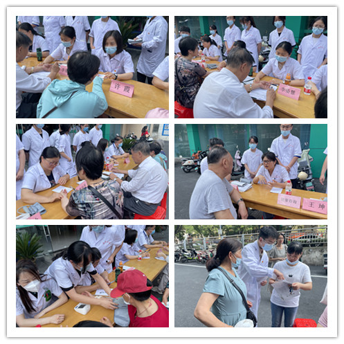 活动从下午2点半开始,前来诊疗和咨询的群众络绎不绝,参加义诊服务的教工党员细心为社区居民把脉开方,耐心细致地为他们讲解如何合理用药以及根据不同体质如何养成健康行为习惯。员工党员们为居民们发放“中医食忌”、“夏季养生”等相关宣传手册,为老年人测量血压,活动现场气氛热烈。