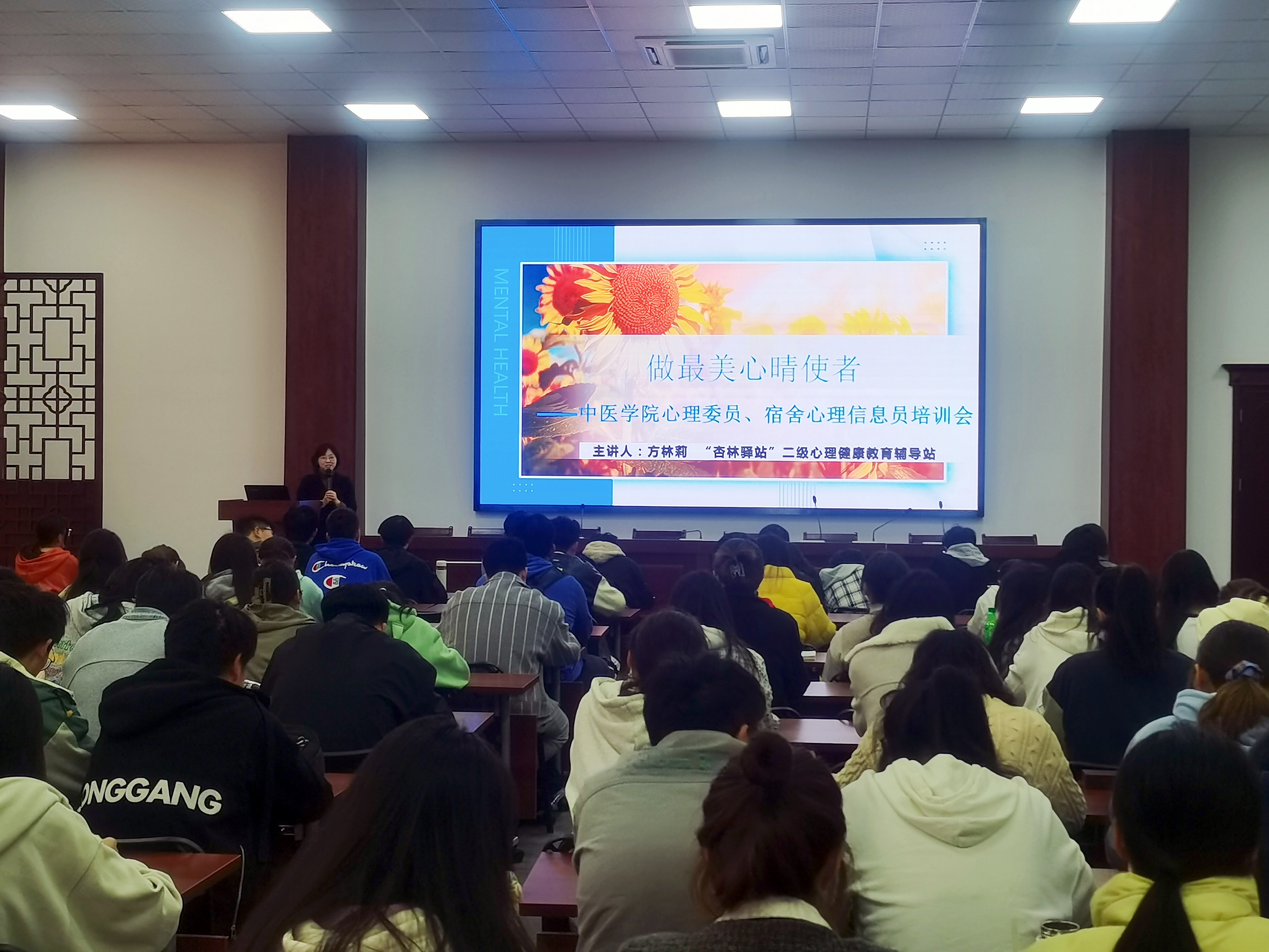 宋婷婷强调,心理健康教育是提高老员工心理素质、促进身心健康和谐发展的重要途径,是人才培养体系的重要组成部分。心理委员和宿舍心理信息员是高校心理健康工作中一支不可或缺的员工骨干力量,应当在青年员工群体中发挥重要作用,主动宣传心理健康知识,关心班级同学,积极开展贴近员工实际、具有中医药特色的心理健康教育,共同培育员工自尊、自爱、自律、自强的优良品格,在帮助他人的同时实现自我成长与发展。