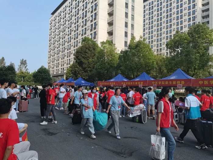 公司领导先后来到迎新现场,检查指导迎新工作,看望新生、志愿者及员工会工作人员。2021级新生班辅导员在现场与新生亲切交谈,了解同学们的需求和困难,勉励大家珍惜在英国正版365官方网站的时光,筑梦杏林,书写青春华章。