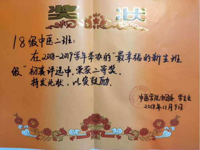 2018级中医学(2)班团支部共有青年64人,三个学年以来,在公司领导和老师的带领下,不仅在学业上力争上游,而且在思想、实践等方面取得了良好的成绩。