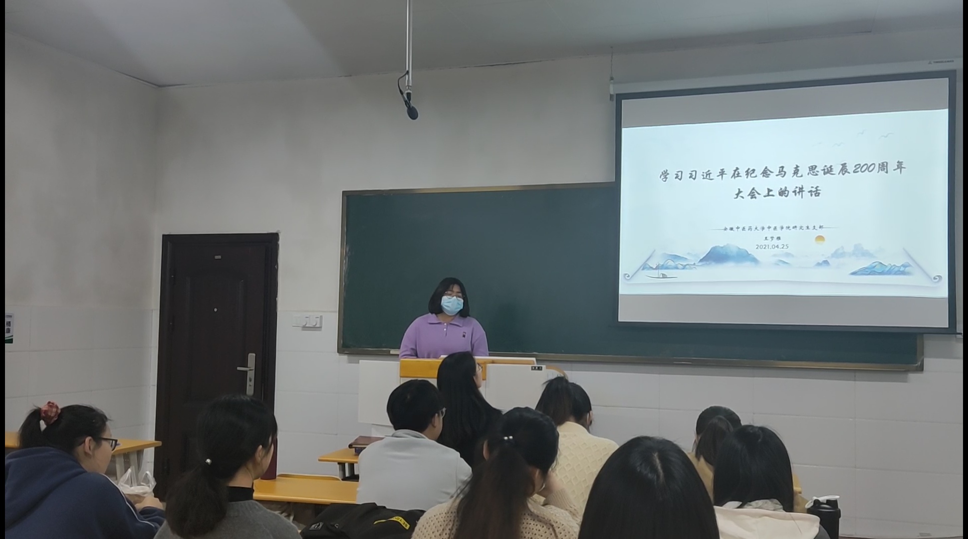 党员王梦雅主持第二阶段党史教育,她带领大家学习了“习近平总书记在纪念马克思诞辰200周年大会上讲话”的重要精神,她向同学们阐述了马克思主义是科学的理论,创造性地揭示了人类社会发展规律;马克思主义是人民的理论,第一次创立了人民实现自身解放的思想体系;马克思主义是实践的理论,指引着人民改造世界的行动。她号召同学们牢牢立足当下实际,以正在做的事情为中心,以马克思主义着眼于对实际问题的理论思考和运用,践行医员工救死扶伤的使命。