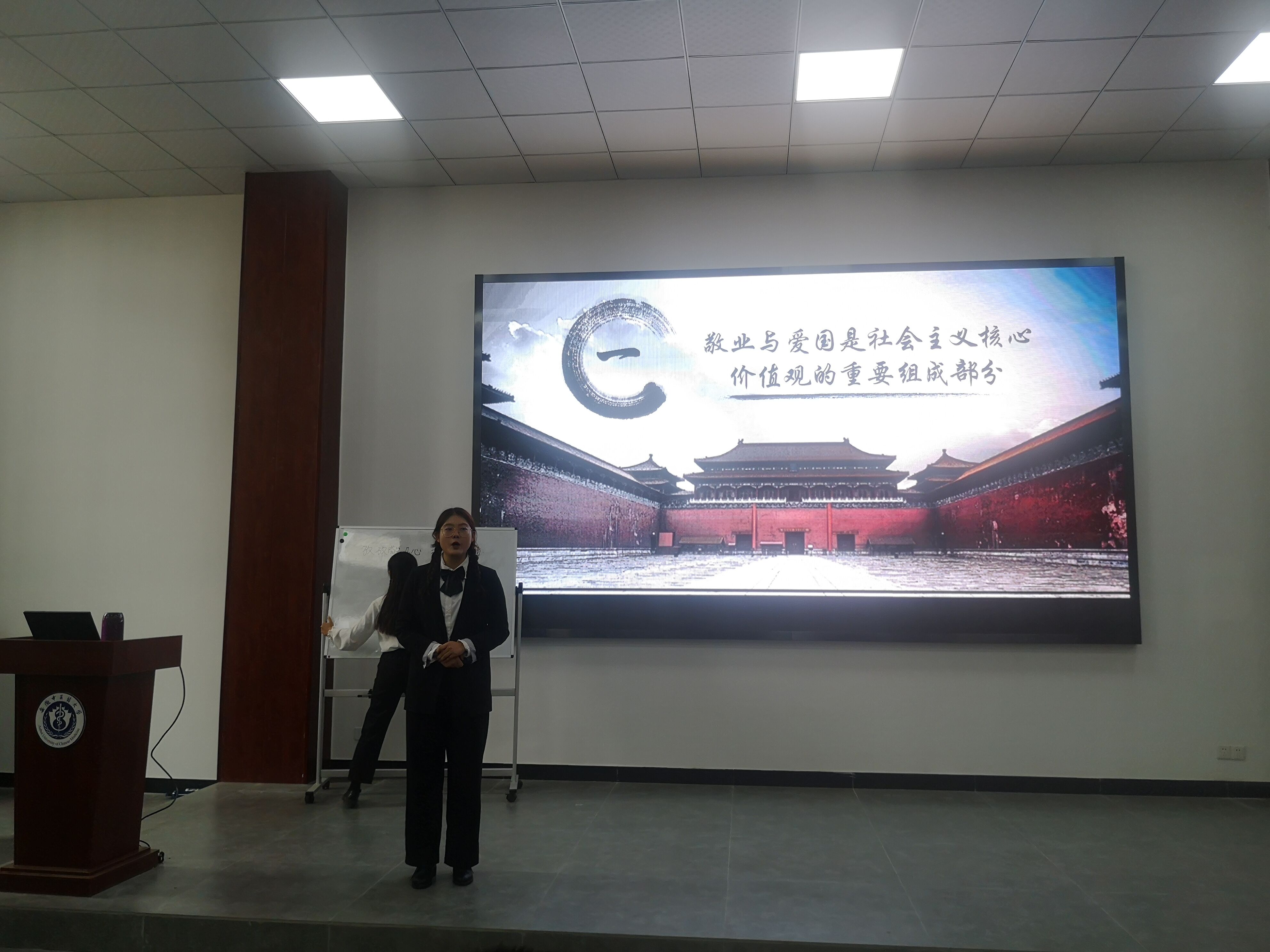 此次活动共有10支参赛团队,均是由各班级初赛后选拔推荐。比赛中各参赛队以“中医药员工与敬业”、“疫无反顾”、“敬业爱国——弘扬抗美援朝精神”、“弘扬敬业精神,成就青春梦想”等为题,将敬业精神与中医行业相结合、将思政课教材中的理论与身边的抗疫故事相结合,用年轻人的“语言”讲述思政课,展现了中医学子的爱国敬业精神,展现了青年员工的责任与担当。