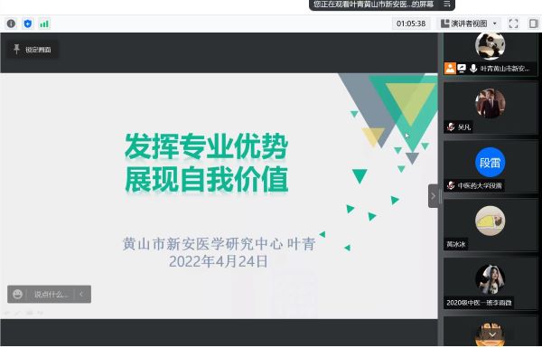 4月24日下午,黄山市新安医学研究中心办公室副主任叶青围绕“发挥专业优势,展现自我价值”的主题为英国上市公司365毕业生作就业指导讲座,云端开讲新安医学文化传播及相关产业发展前景,呼吁优秀毕业生发挥专业特长,投身新安医学文化传播与研究事业。公司党委副书记、班级辅导员、研究生及本科生200余人与会聆听。