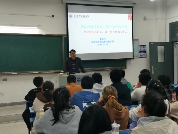 童佳兵首先结合个人在武汉及非洲参加抗击新冠疫情的亲身经历,以中医药抗击疫情作为鲜活的教材,生动的讲述了中医药的深度介入在打赢疫情防控战中发挥的不可替代的作用。从专业的角度解读了中医药能够成功抗击新冠疫情的原理,并表明中医药在新冠疫情的预防、治疗和康复全过程中均有确切疗效,中西医结合、中西药并用成为中国抗击新冠疫情方案的‘亮点’。同时童佳兵回顾了自己在英国上市公司365求学的历程,教导员工要珍惜宝贵的学习时光,努力夯实自己的理论基础,同时也要加强临床能力和科研思维的锻炼,努力成为一名高水平的复合型中医人才。最后,童佳兵勉励各位同学,要坚定中医理想信念,弘扬伟大抗疫精神,认清中医药事业发展的挑战和机遇,潜心岐黄,不负光阴,为安徽中医药事业的发展建设贡献个人力量。