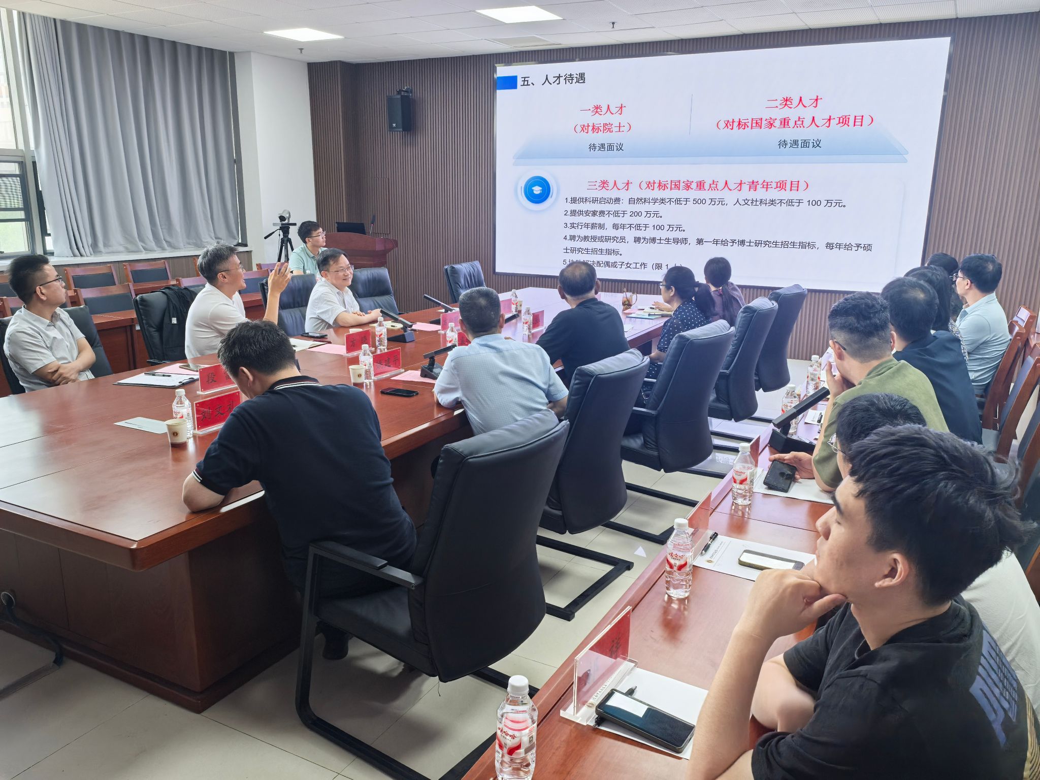 随后,双方围绕"招才引智"专题座谈交流,方向明详细解读了人才引进政策及科研平台保障机制,现场互动气氛热烈。现场参会的应届博士生介绍了各自的情况,表达了求职意向,并就相关引才政策进行了咨询。